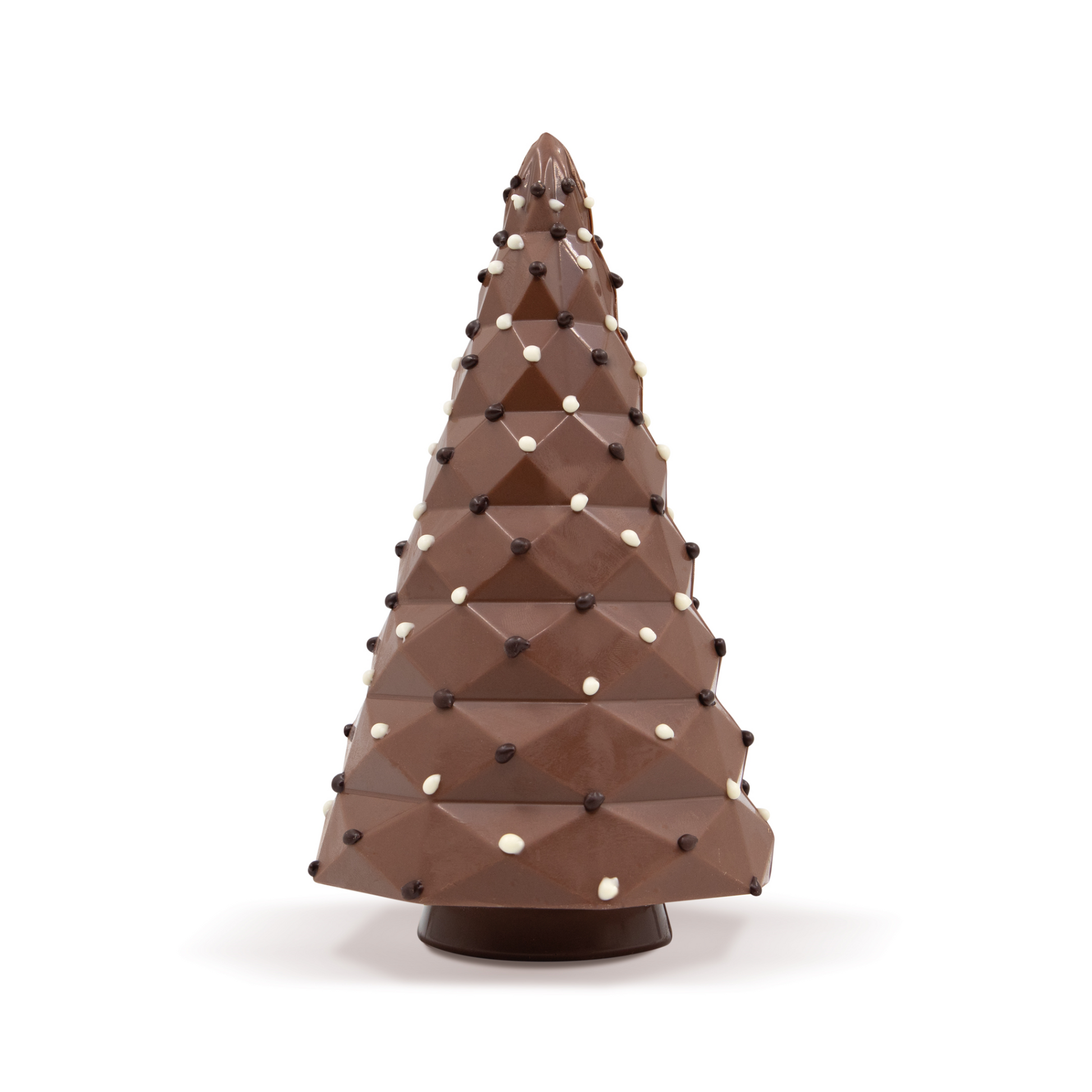 Scopri l'Albero Diamond al Cioccolato Dolmarr da 250g, un'elegante e deliziosa creazione natalizia disponibile in quattro gusti irresistibili: cioccolato al latte, fondente, bianco e pistacchio.